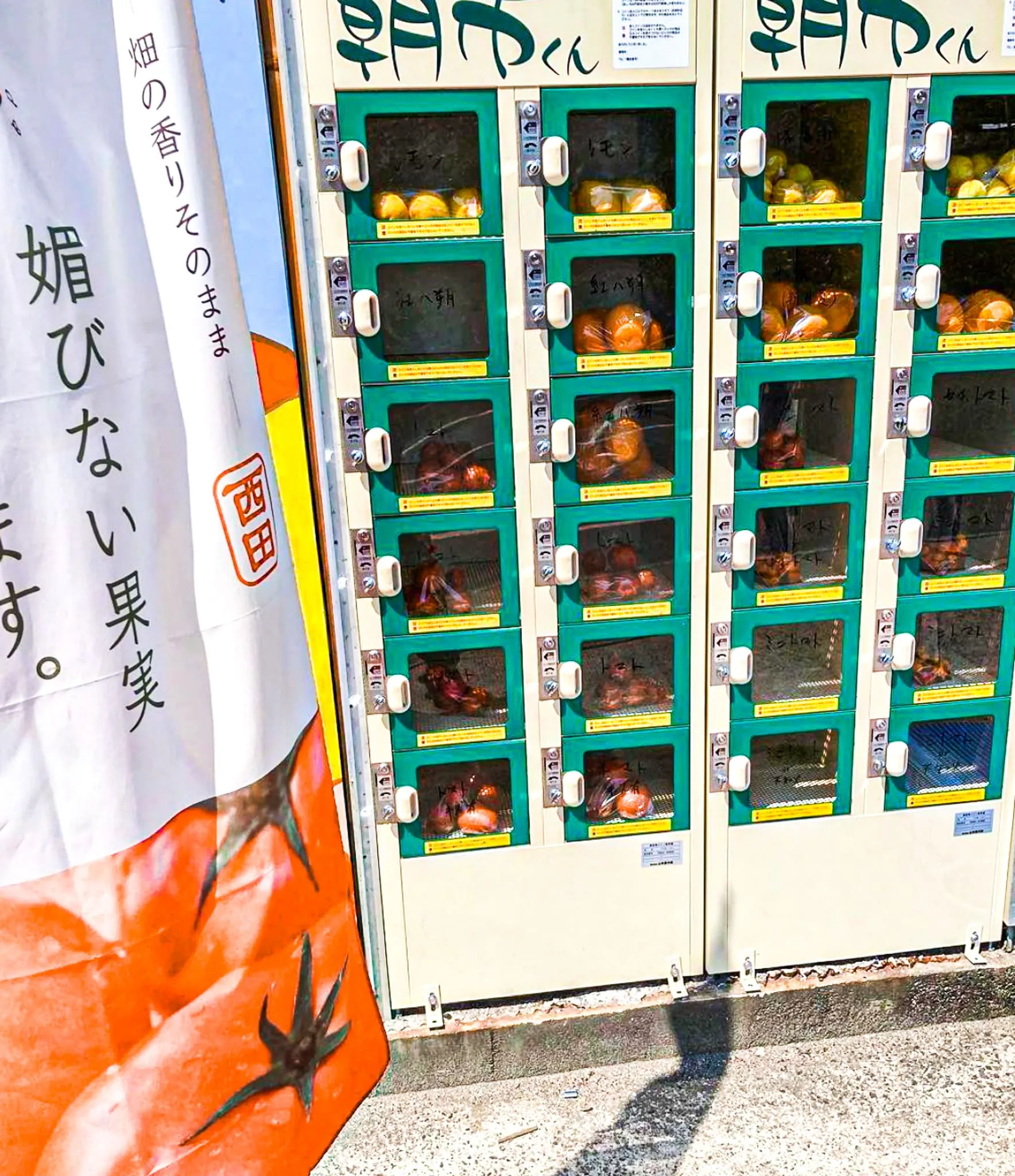 島には野菜の無人販売があります。確認できるだけで5ヶ所。県道沿いあることもあれば、中路にあることもあるという。食材を探す旅に出よう!さぁ、あなたは何ヶ所発見できるかな!?