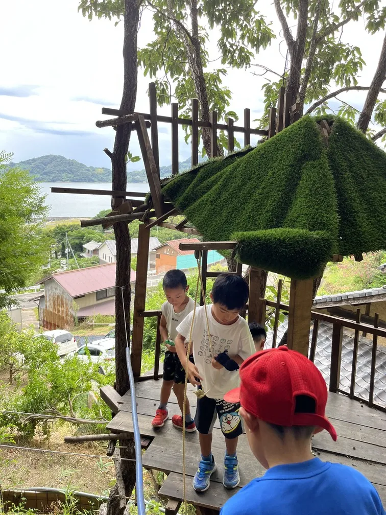 DIYされたアスレチックとツリーハウスを満喫。コロナ禍で暇すぎた宿主が力の有りあまる小坊主3人と共に裏山に制作。擦り傷必須。自然から子どもが学ぶとはまさにこのこと。対象は小学生以下です。希望があれば、新しいアスレチックを一緒につくることも可能かも!?